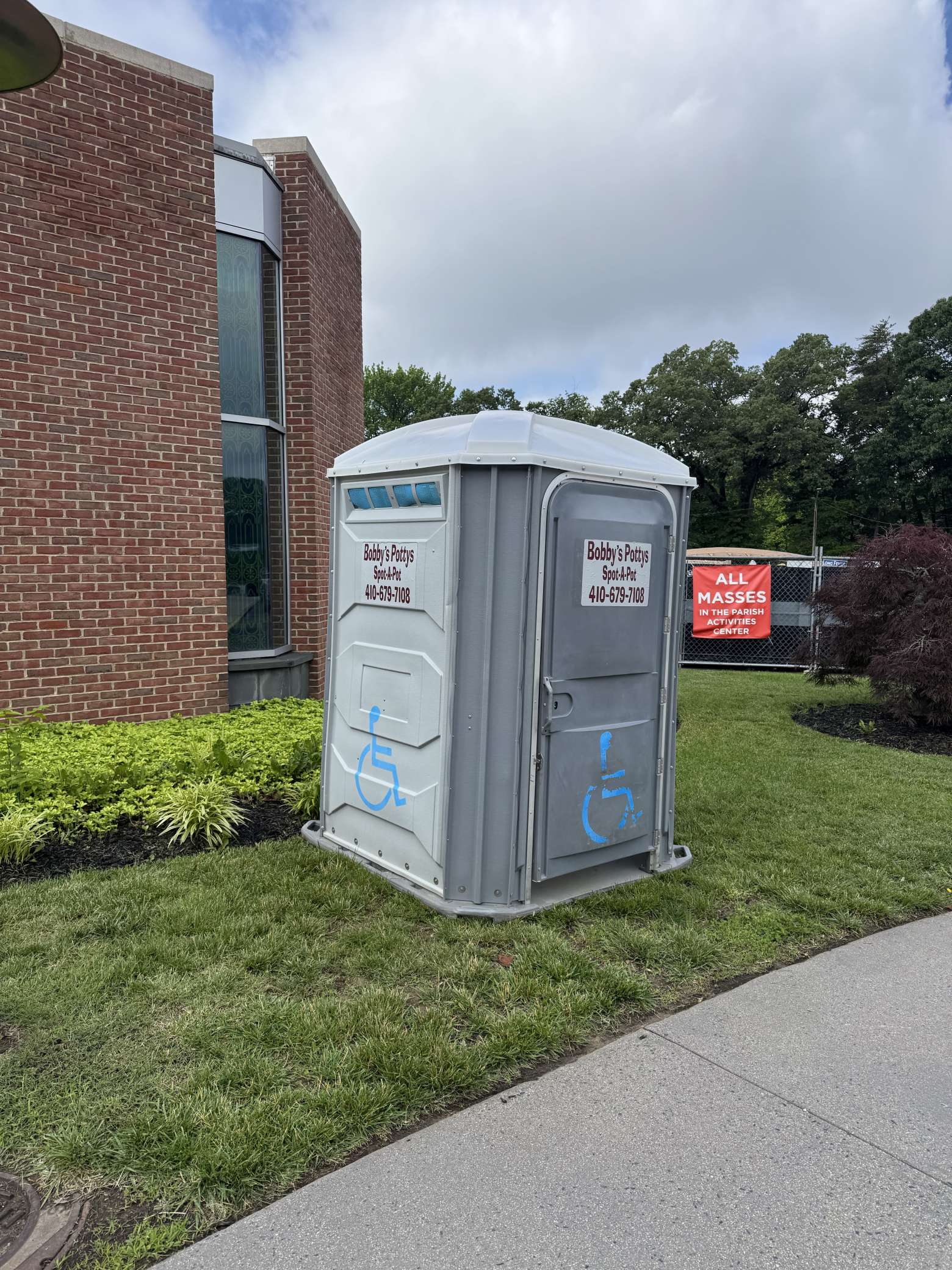 We decided to use the savings to fund the cost of installing a new ADA Family Restroom and renovating our current men's and women's restrooms. While we wait for the newly renovated restrooms to open later this summer, we have a temporary port-a-pot in place for parishioners to use in an emergency.