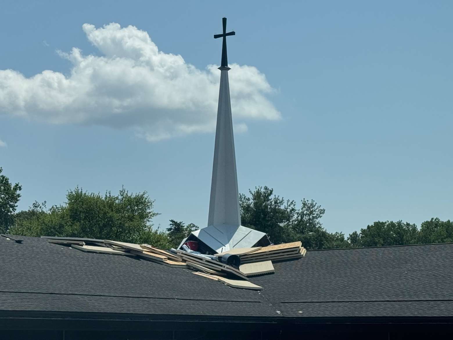 Above all of this, crews have begun removing the old church roof to install new insulated roof decking, a water and ice shield, and new shingling. This upgrade will finally give our church the standard "R30" insulation rating that has been common in homes and newer buildings for years. (Thank you for your patience as the corner of our parking lot has become the storage place for all of the insulated roof decking still awaiting installation.)
