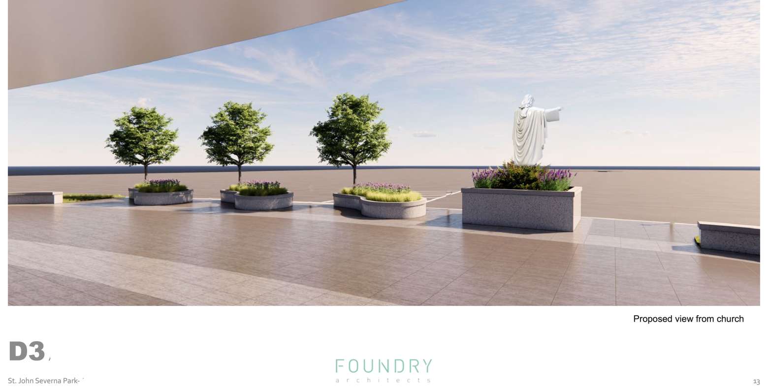 3. Creating a more inviting space for parishioners to gather and socialize in the plaza area.