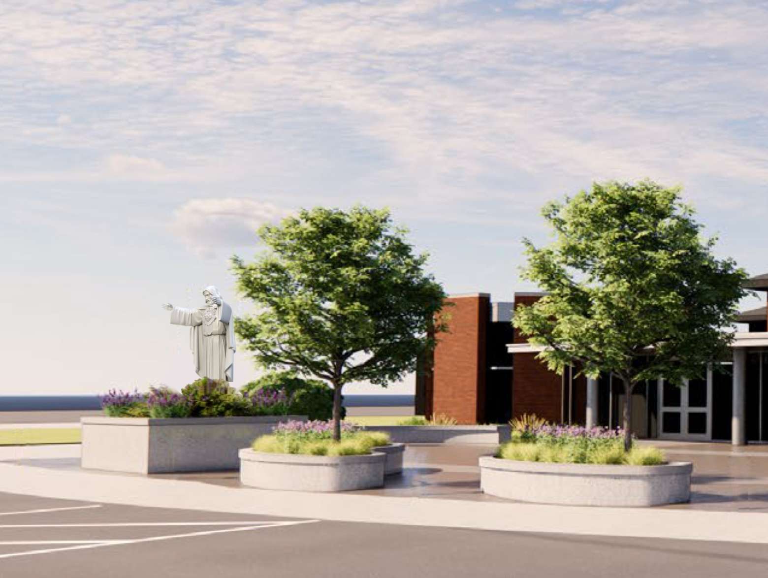 4. Orienting the plaza toward the primary doors into the church, including a statue as a landmark to help identify the main entrance into our church.